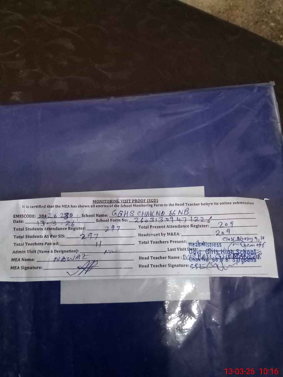 | EMIS Code: 38420230 | Name of School: GGHS CHAK NO.66 NB | |||