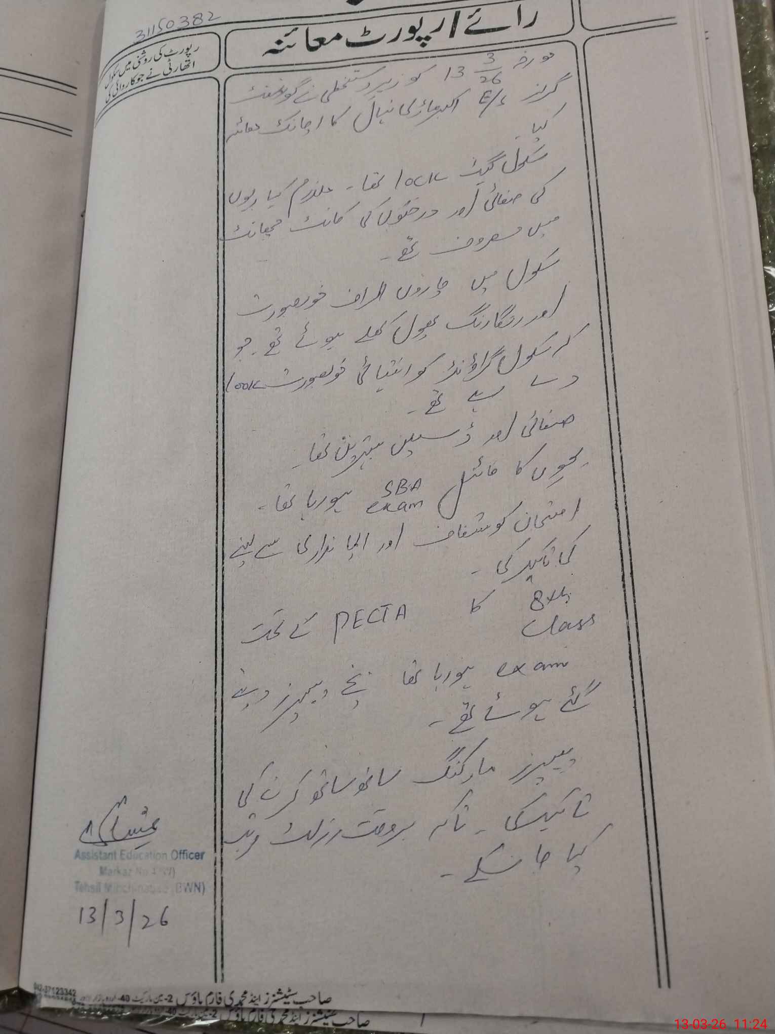 | Certified that this School was Inspected by the Undersigned MEA/DMO Today and the Information Stated Above is as Per Record. | |||||