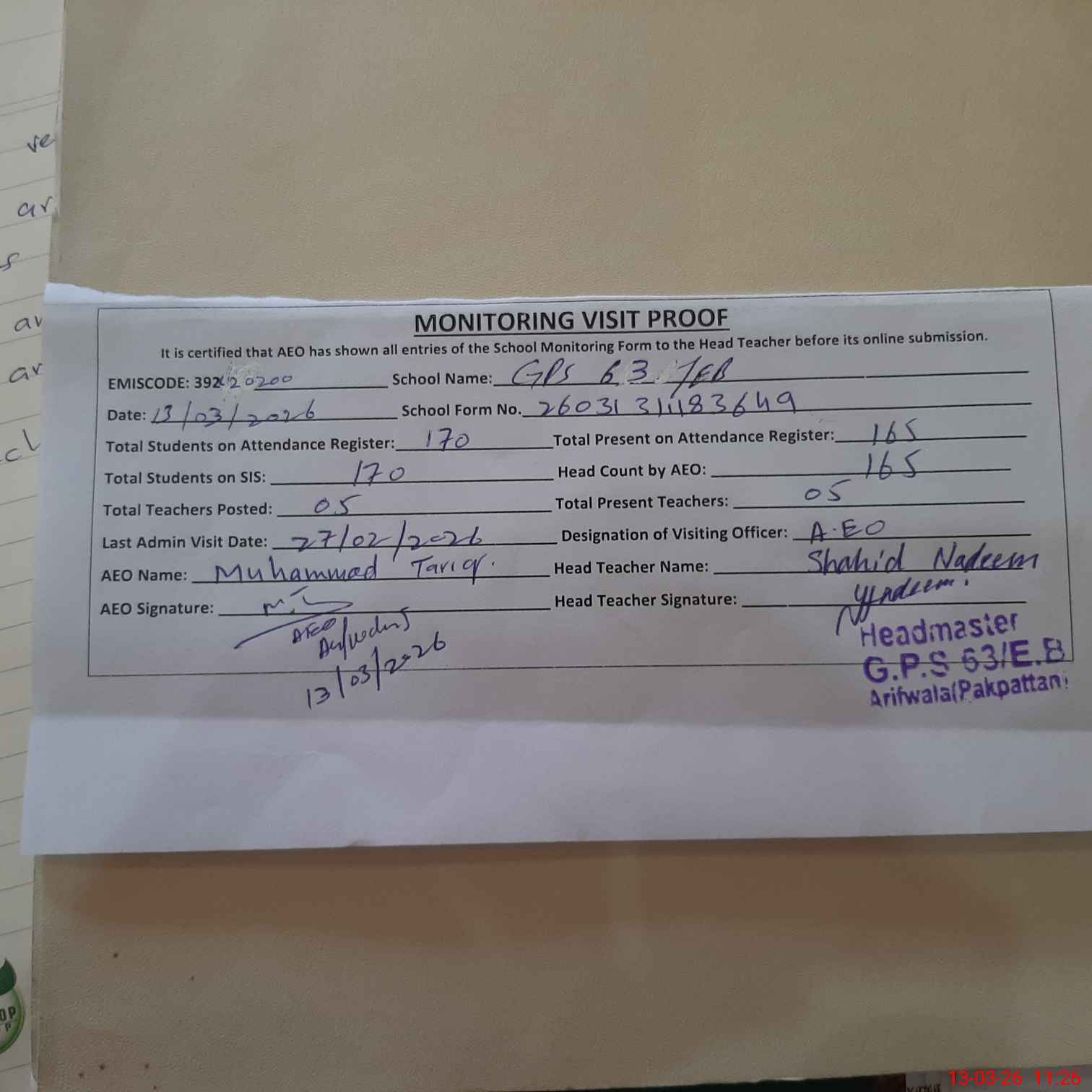 | EMIS Code: 39220200 | Name of School: GPS 63 EB | |||
