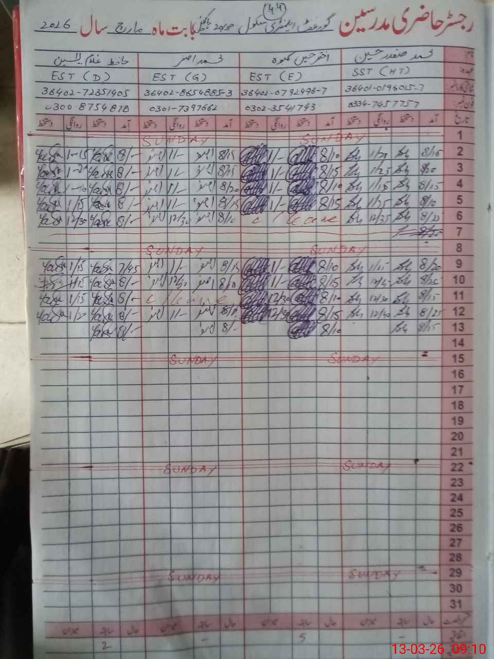 | Name: MU**** SA**** HU**** Designation: (School Headmaster's/Headmistress's) SST GENERAL Phone/Cell Number: 03**** |