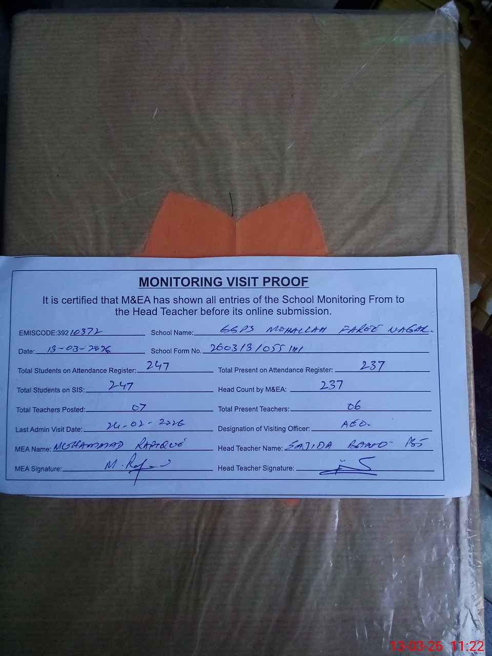 | EMIS Code: 39210372 | Name of School: GGPS MOHALLAH FAREED NAGAR | |||