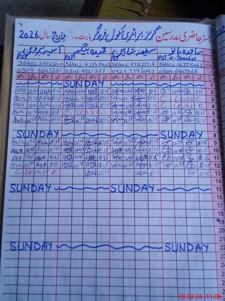 | Name: Ha**** Be**** Designation: (School Headmaster's/Headmistress's) PST Phone/Cell Number: 03**** |
