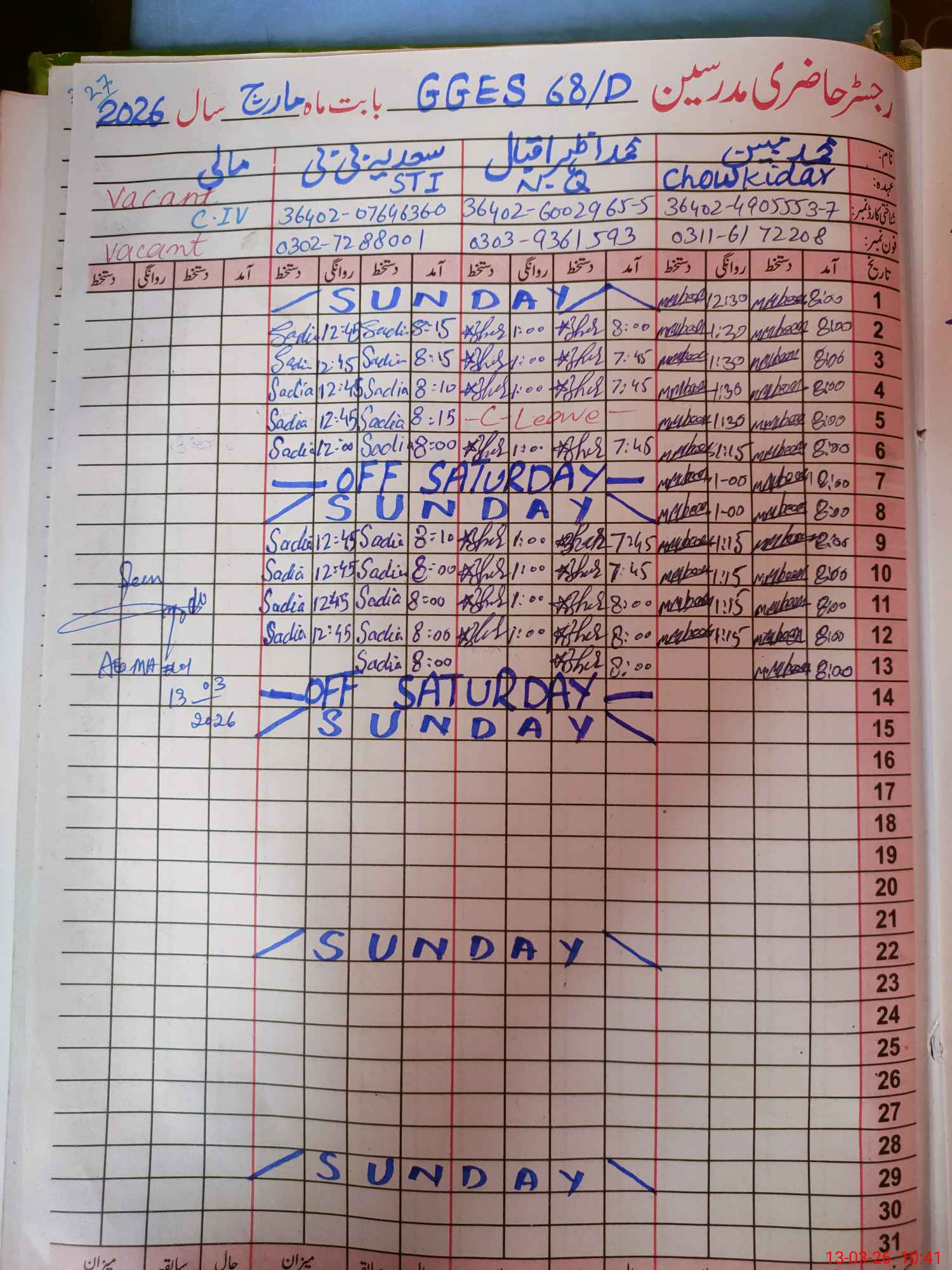| 36**** | Na**** Am**** | PST Science/Maths | Regular | 0 | 0 | 0 | 0 | 0 | 0 | 0 | 0 | 0 | Casual |