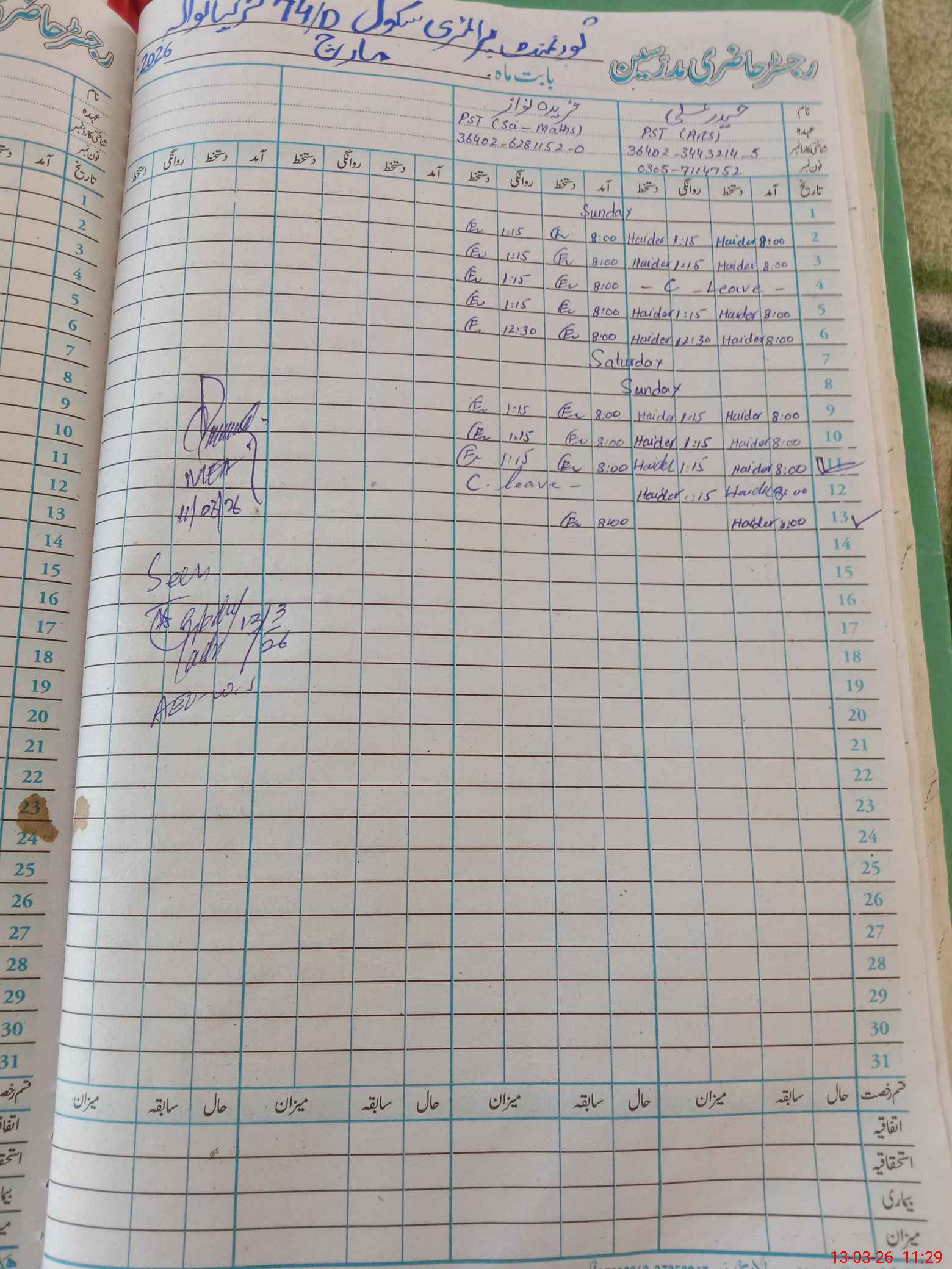| Name: HA**** AL**** Designation: (School Headmaster's/Headmistress's) PST Phone/Cell Number: 03**** |