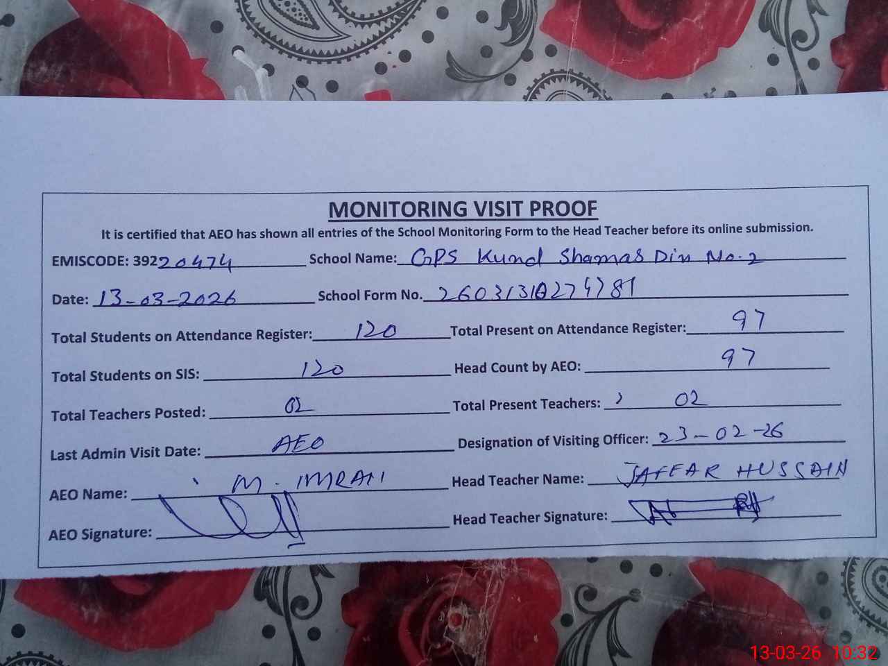 | EMIS Code: 39220474 | Name of School: GPS KUND SHAMAS DIN NO 2 | |||