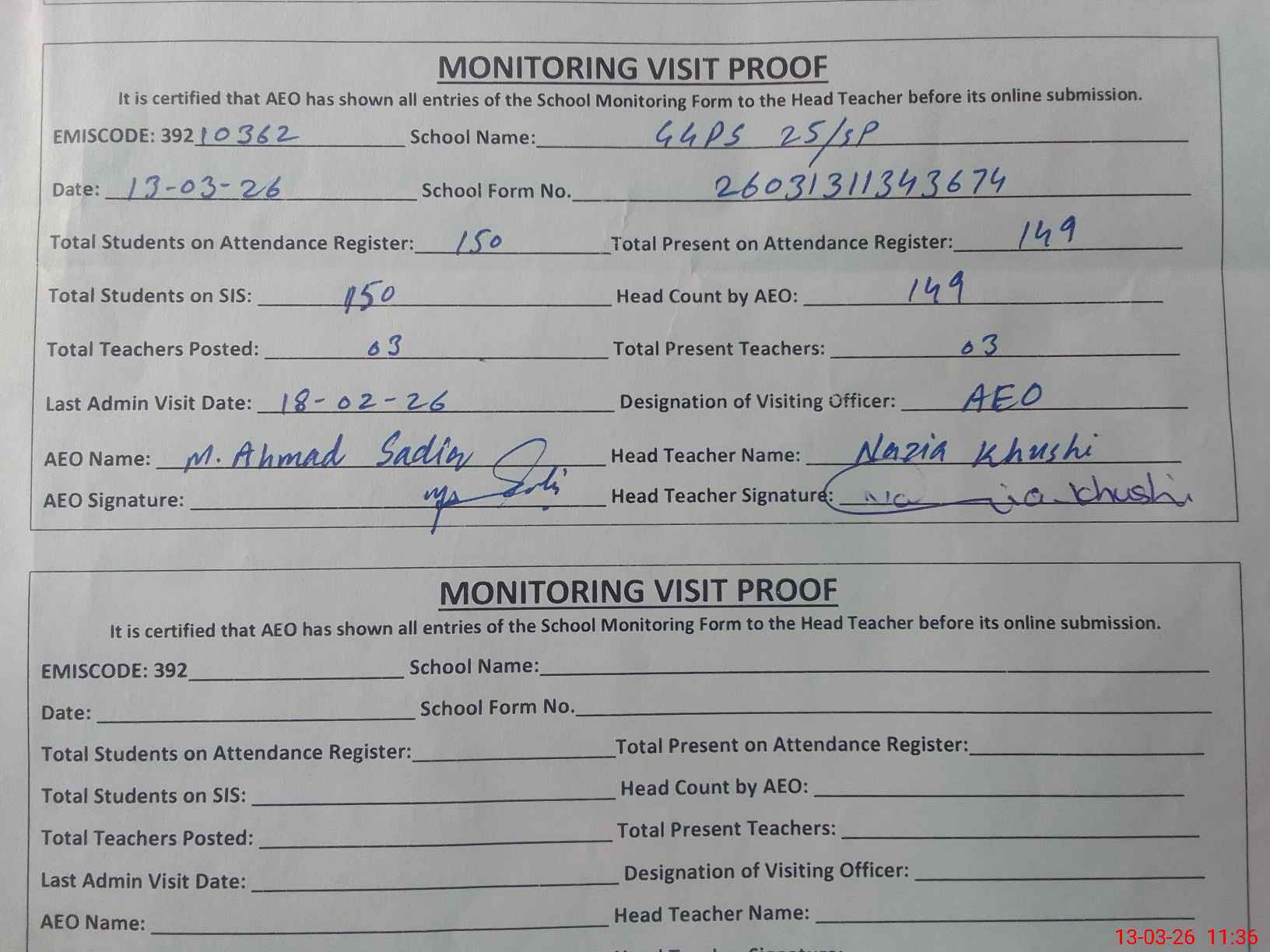 | EMIS Code: 39210362 | Name of School: GGPS 25/SP | |||