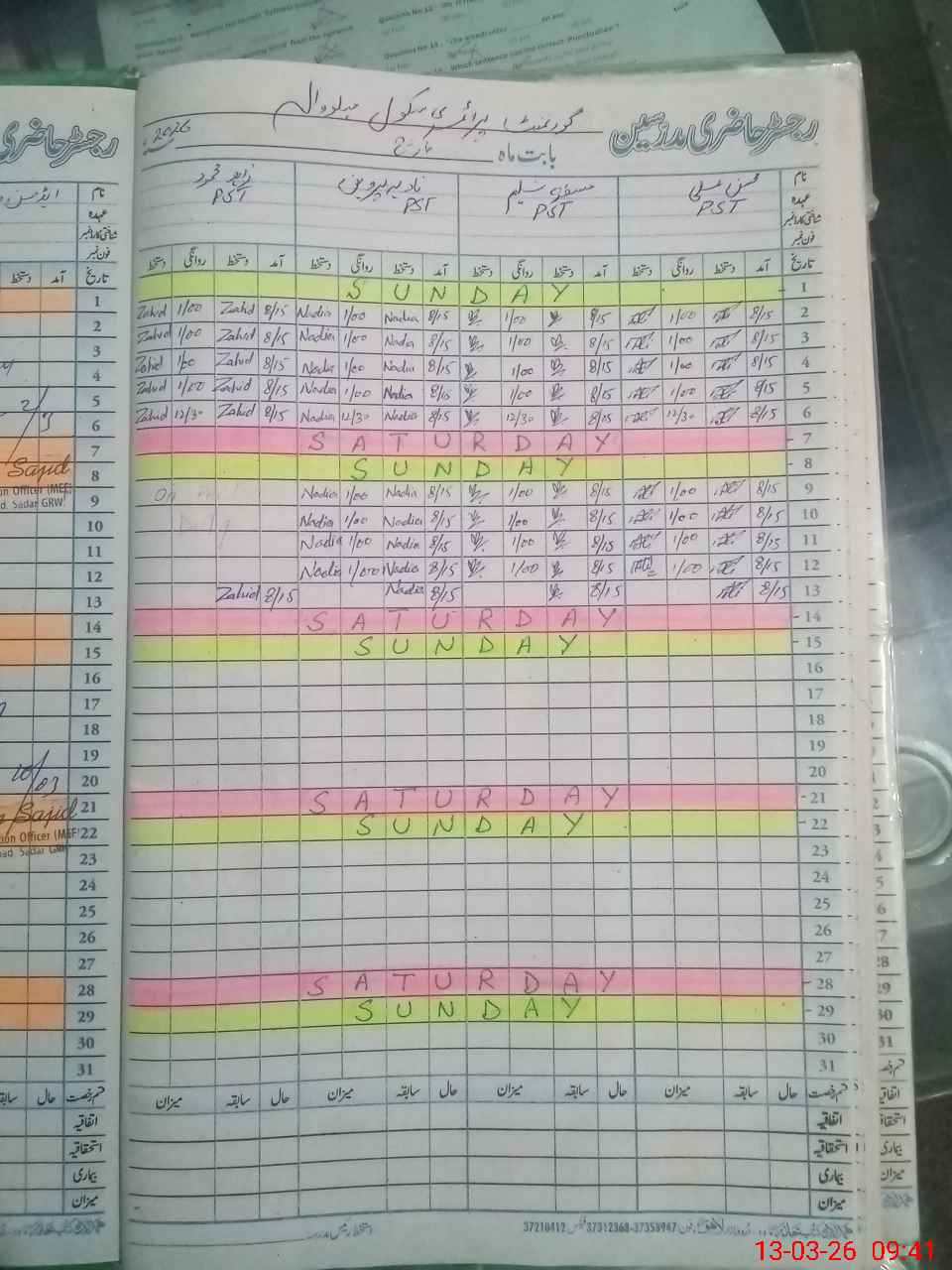 | Name: MO**** AL**** Designation: (School Headmaster's/Headmistress's) PST Phone/Cell Number: 03**** |