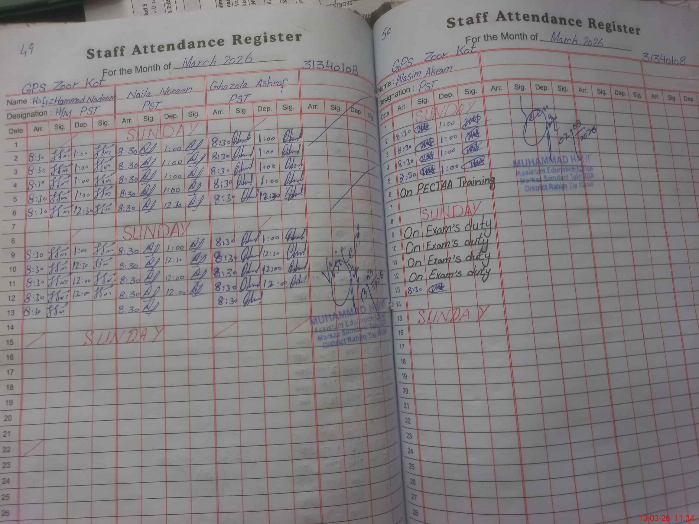 | CNIC | Full Name | Designation | R/C | Absence During Last Calender Month |