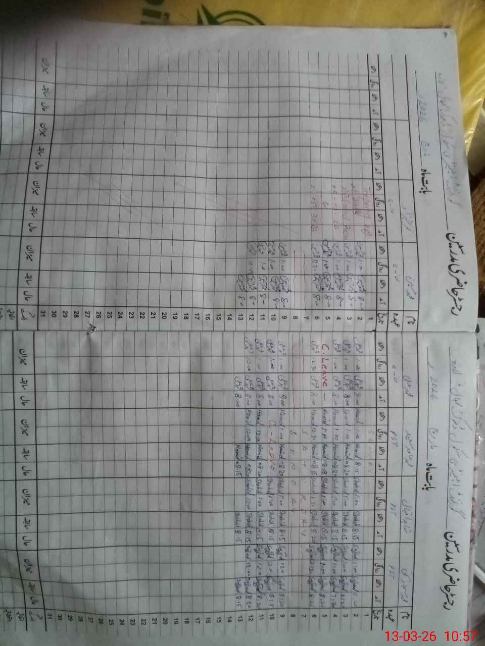 | Leave | Duty | Absent | Maternity | Medical | Ex- Pak |