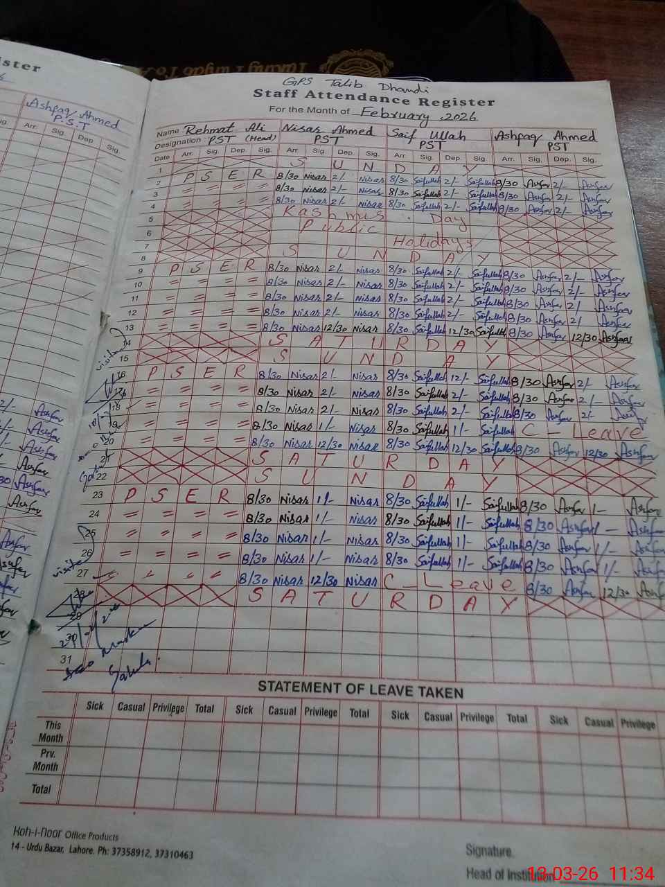 | EMIS Code: 31340133 | Name of School: GPS TALIB DHANDI | |||