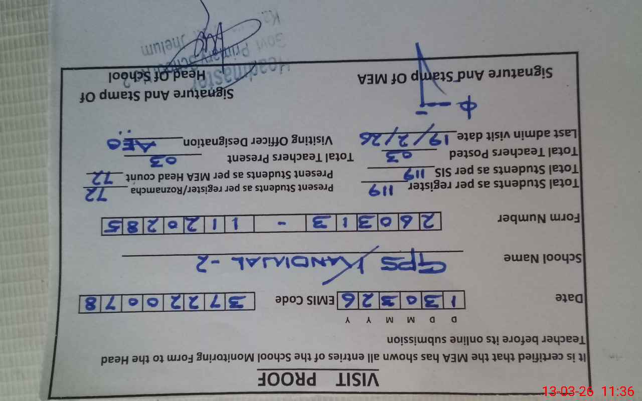 | EMIS Code: 37220078 | Name of School: GPS KANDWAL NO.2 | |||