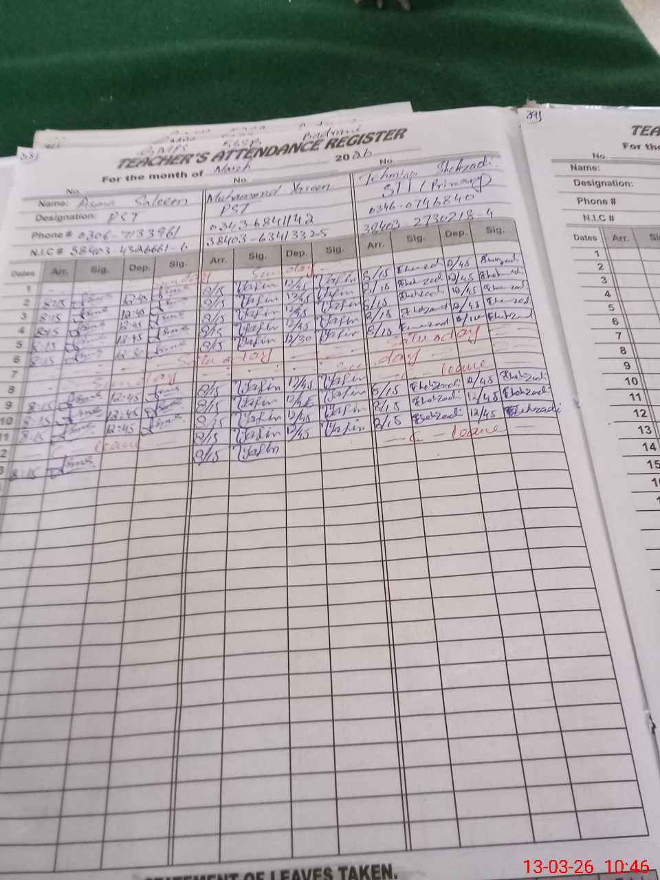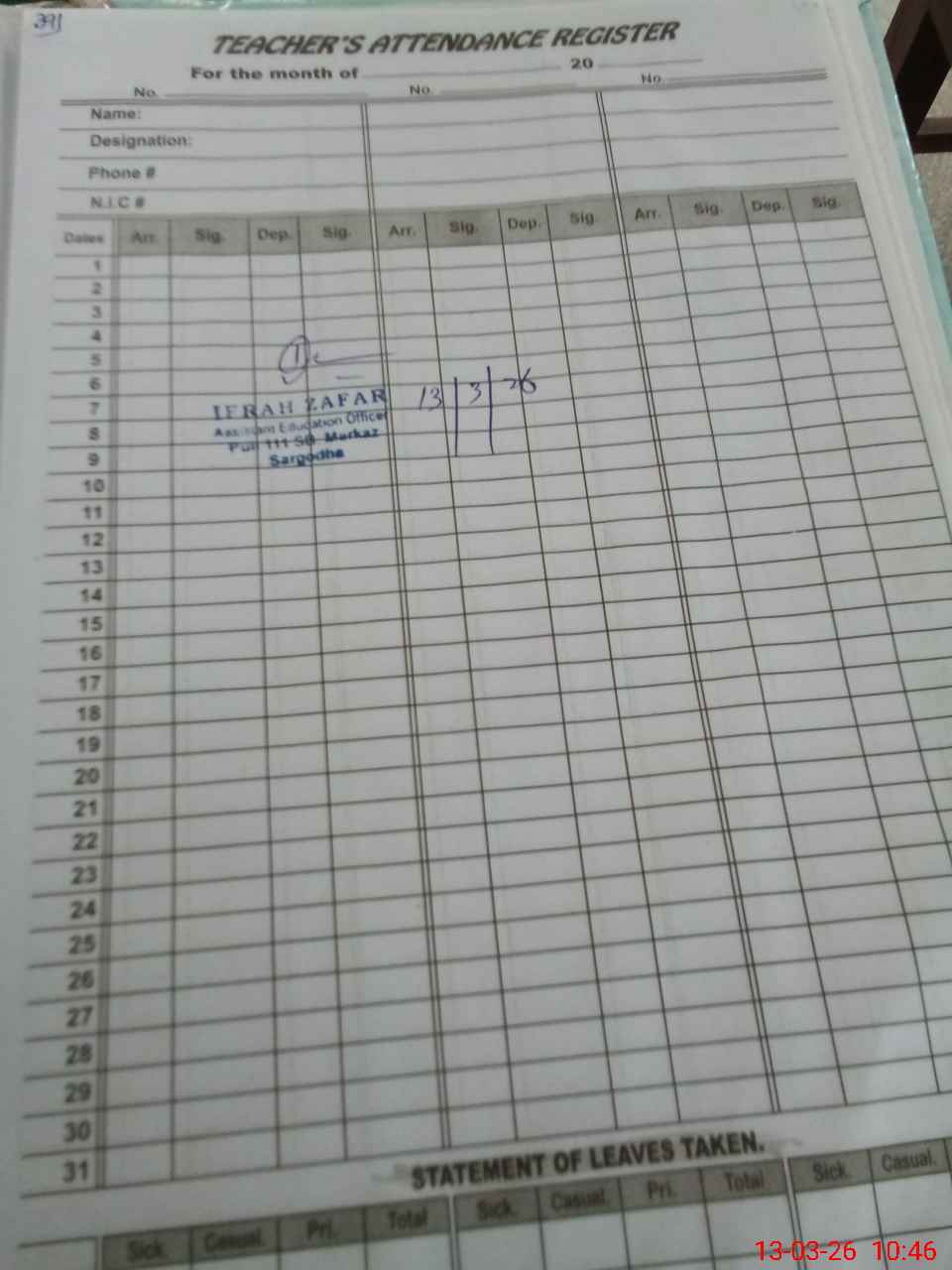 | Name: Is**** Sa**** Designation: (School Headmaster's/Headmistress's) PST Phone/Cell Number: 03**** |