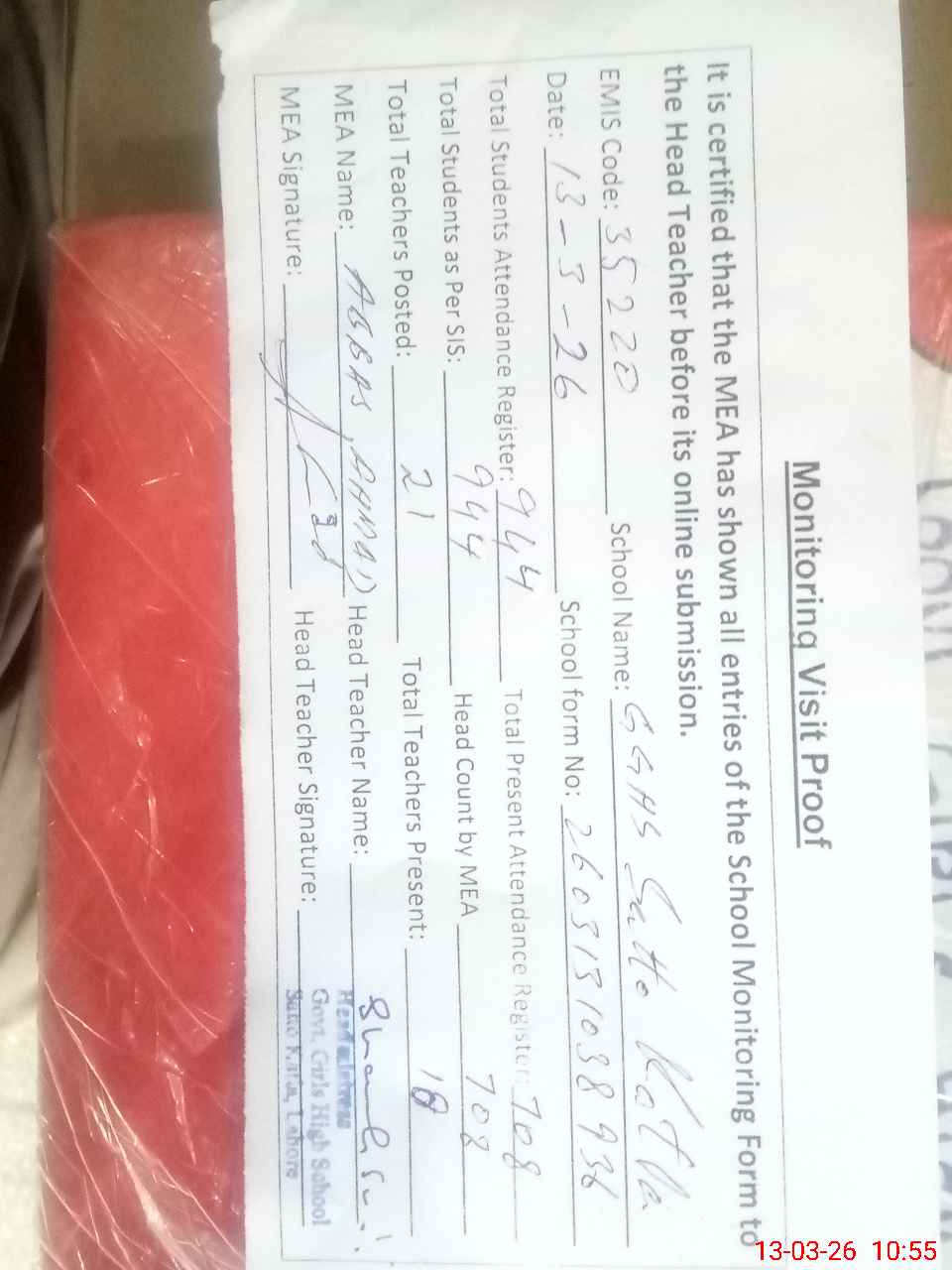 | EMIS Code: 35220370 | Name of School: GGHS SATTO KATLA (Newly Upgraded) | |||