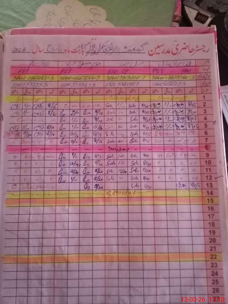 | Name: MU**** IS**** AD**** Designation: (School Headmaster's/Headmistress's) PST Phone/Cell Number: 03**** |