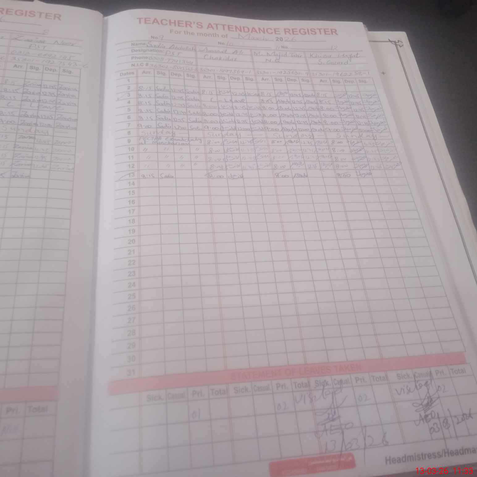 | Name: AB**** PA**** Designation: (School Headmaster's/Headmistress's) S.S.T.(Arts) Phone/Cell Number: 03**** |