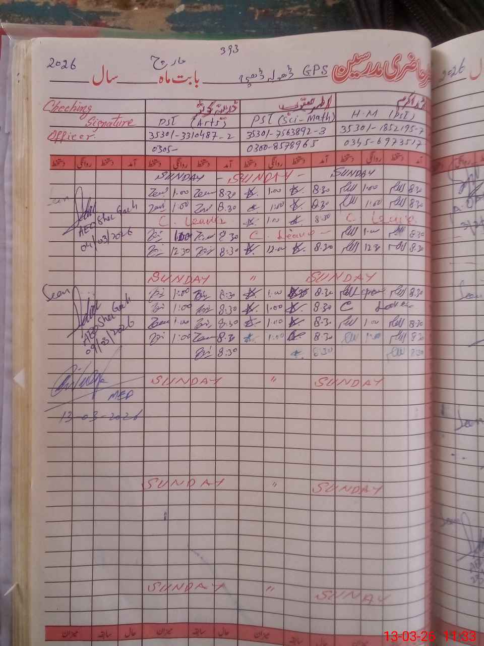 | Name: M.**** Designation: (School Headmaster's/Headmistress's) PST Phone/Cell Number: 03**** |