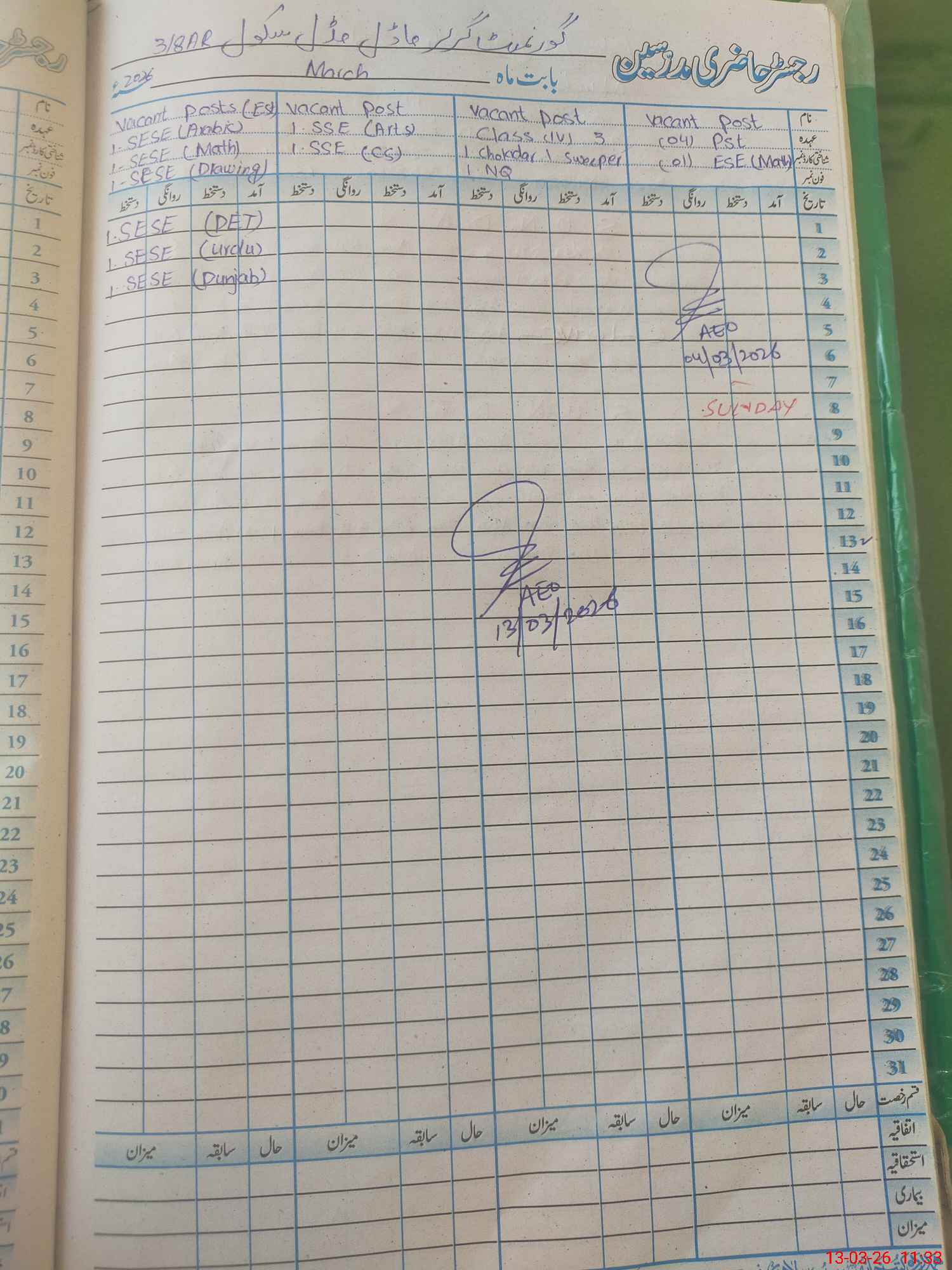 | Name: An**** Bi**** Designation: (School Headmaster's/Headmistress's) EST Phone/Cell Number: 03**** |