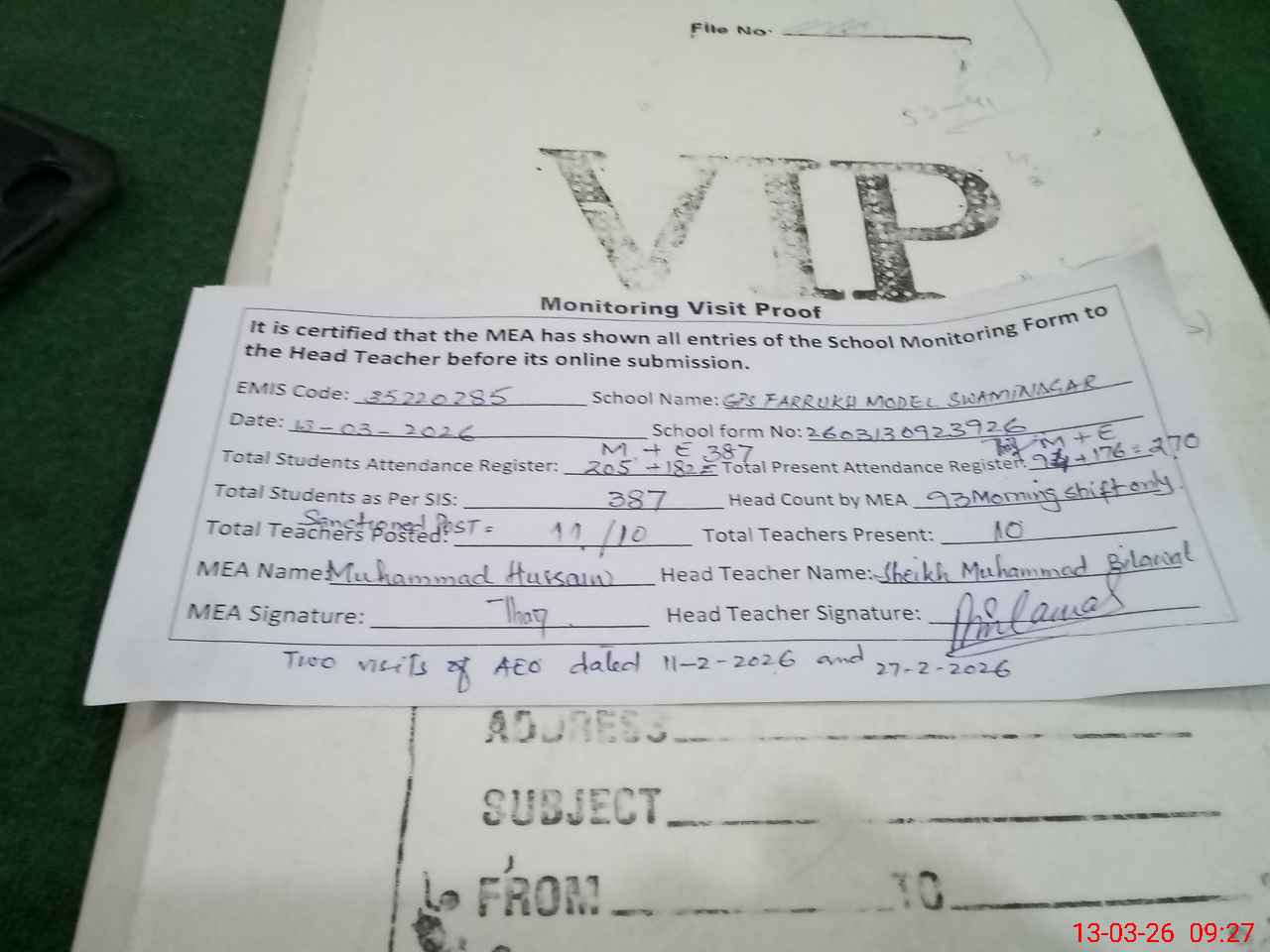 | EMIS Code: 35220285 | Name of School: GPS FARRUKH MODEL SWAMI NAGAR | |||