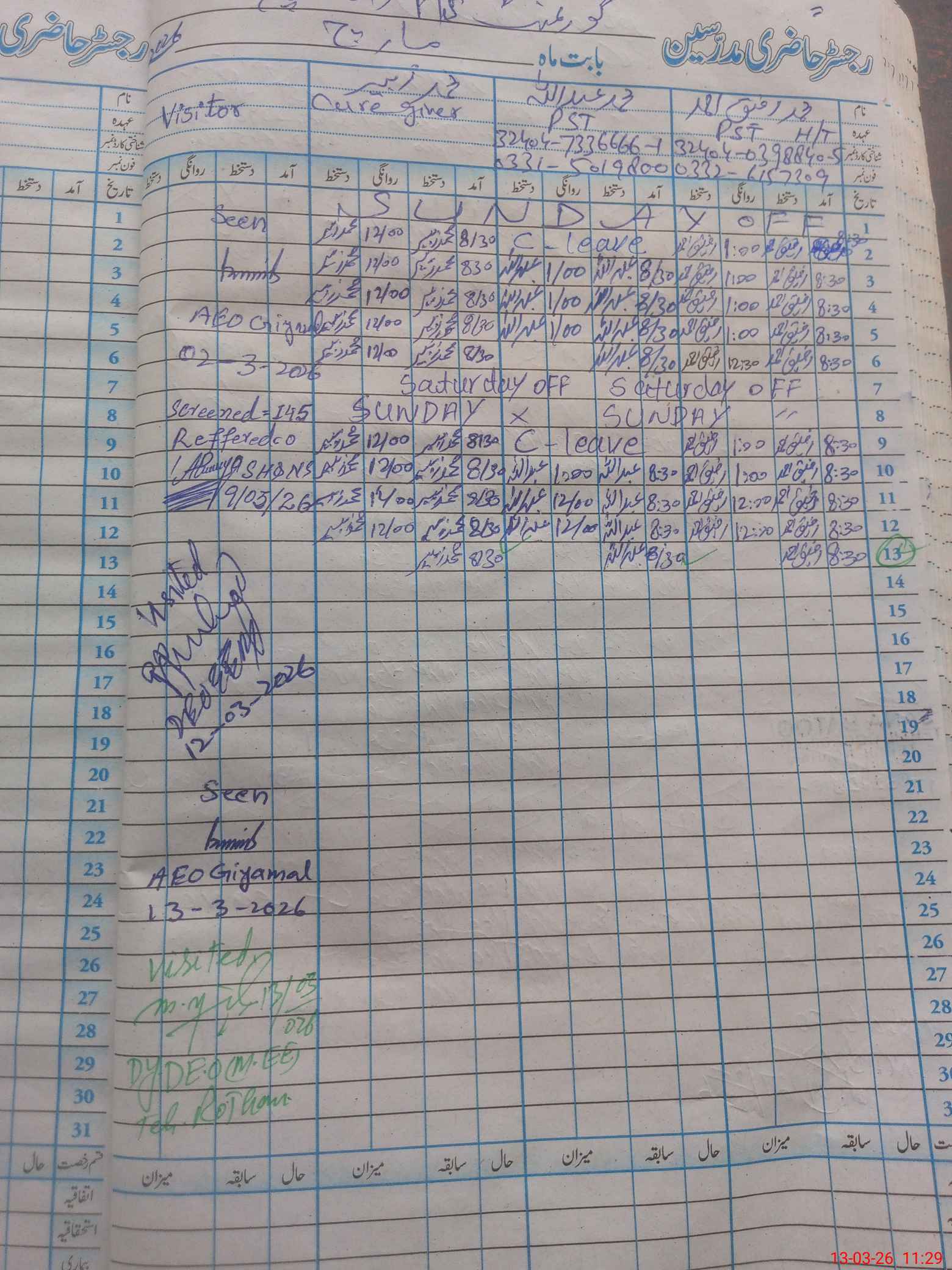 | Remarks (Use Separate Page if Required): Only SBA classes are present other classes are on holidays issued by Govt. of punjab Sed | |||||