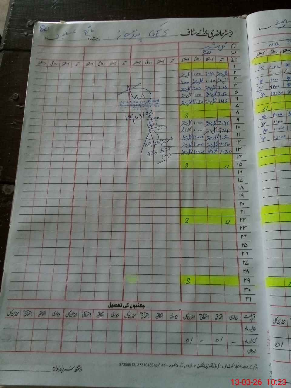| CNIC | Full Name | Designation | R/C | Absence During Last Calender Month |
