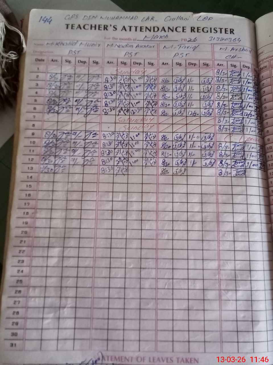 | Name: MU**** TA**** Designation: (School Headmaster's/Headmistress's) PST Phone/Cell Number: 03**** |