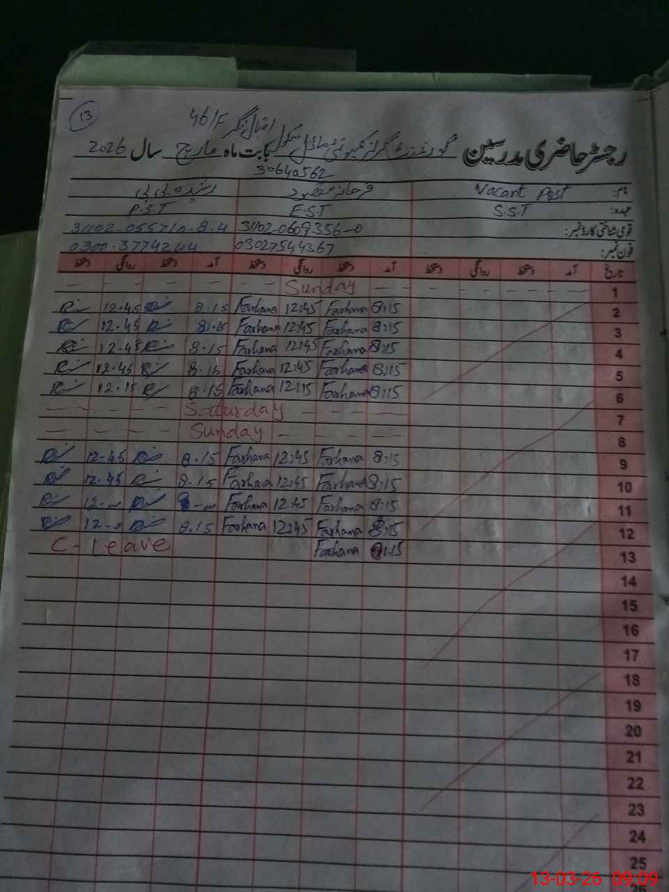 | Name: Fa**** Ma**** Designation: (School Headmaster's/Headmistress's) Est Phone/Cell Number: 03**** |