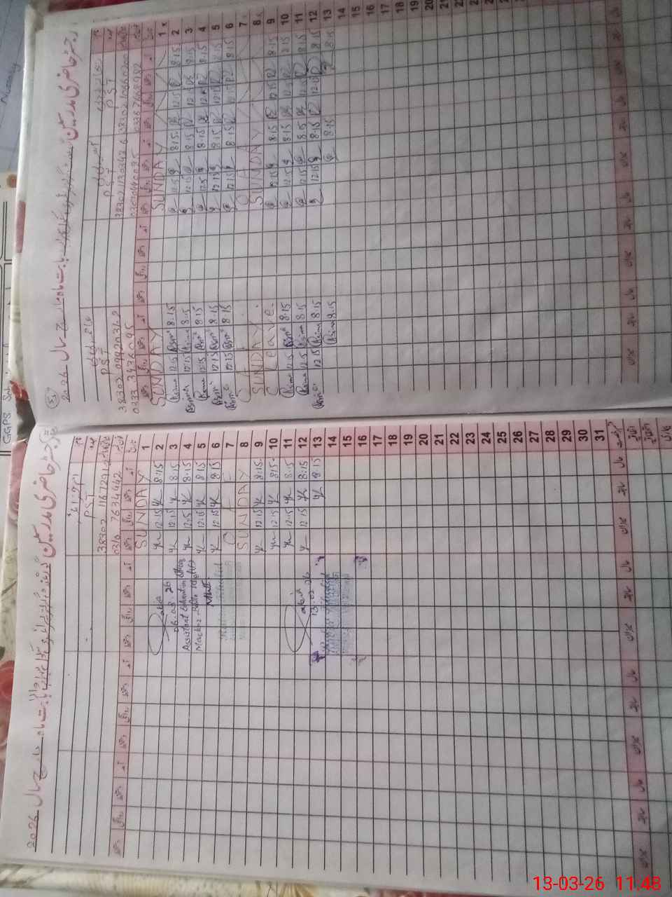 | CNIC | Full Name | Designation | R/C | Absence During Last Calender Month |