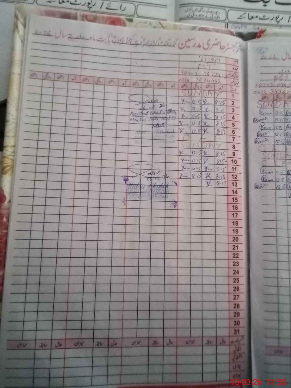 | Name: RE**** BI**** Designation: (School Headmaster's/Headmistress's) PST Phone/Cell Number: 03**** |