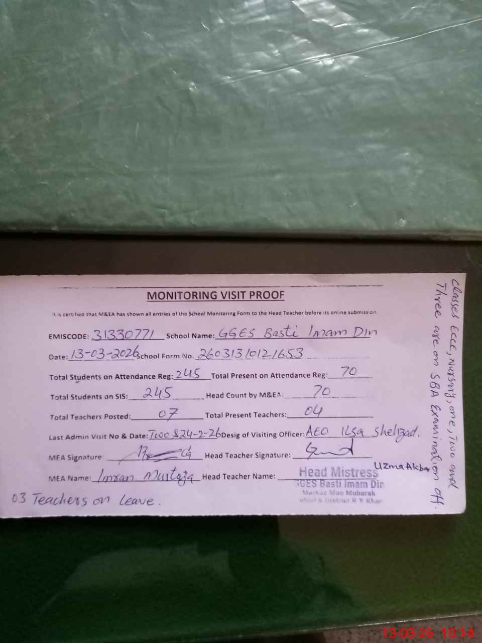 | EMIS Code: 31330771 | Name of School: GGES BASTI IMAM DIN | |||