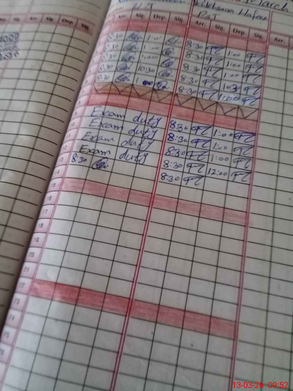 | Leave | Duty | Absent | Maternity | Medical | Ex- Pak |