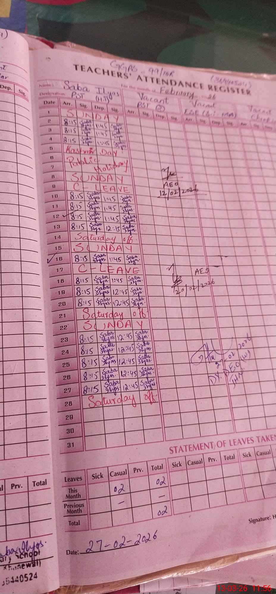 | Name: Sa**** Il**** Designation: (School Headmaster's/Headmistress's) ESE (SCI-MATH) Phone/Cell Number: 03**** |