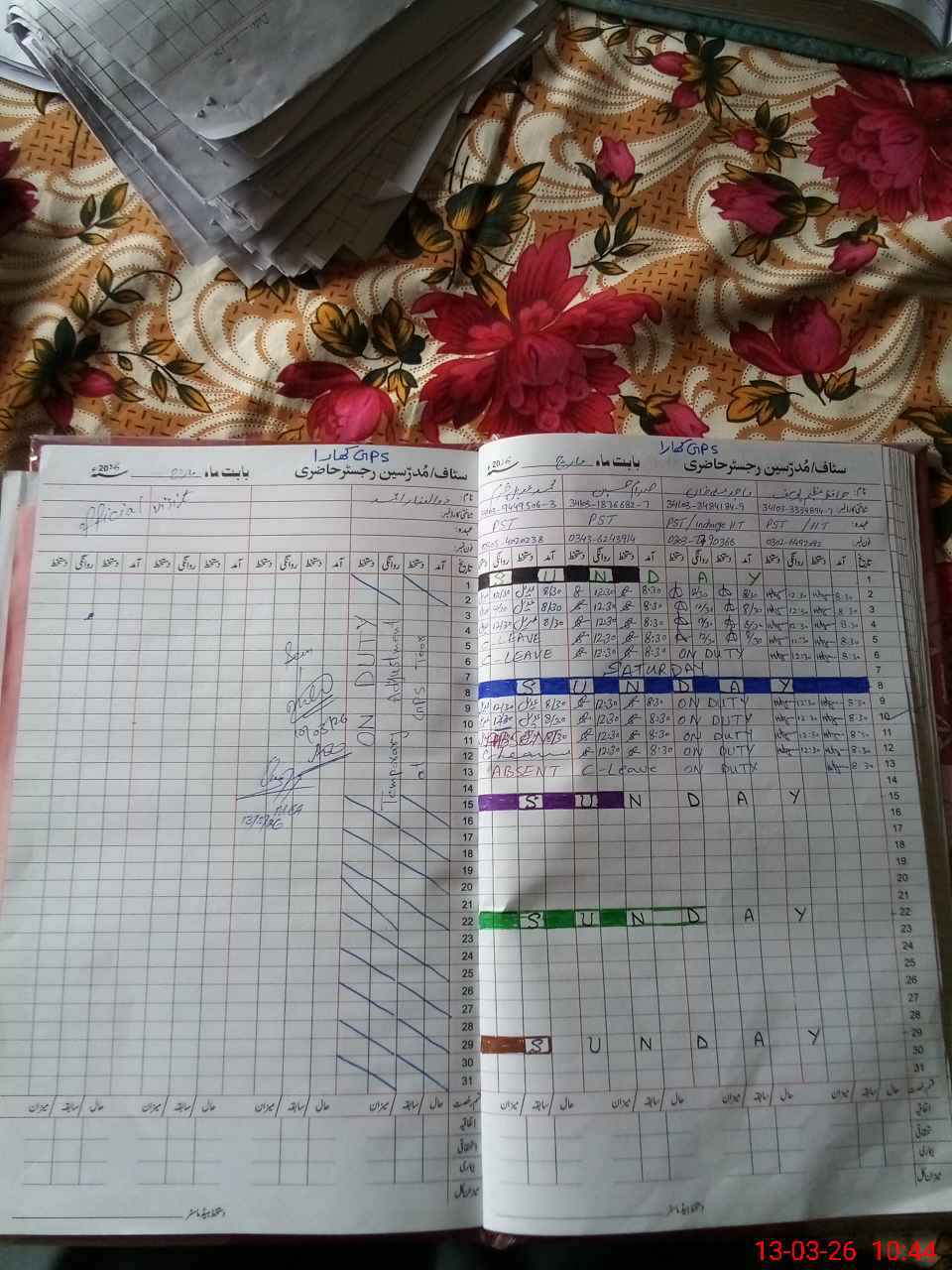 | Leave | Duty | Absent | Maternity | Medical | Ex- Pak |