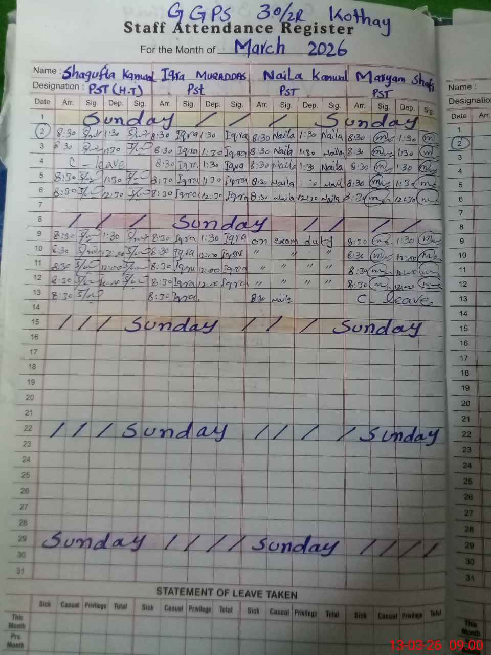 | 35**** | Ma**** Sh**** | PST Science/Maths | Regular | 2 | 0 | 0 | 0 | 0 | 0 | 0 | 0 | 2 | Casual |