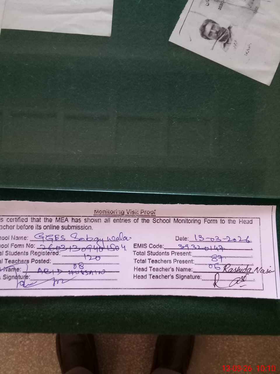 | EMIS Code: 39320147 | Name of School: GGES SOBAY WALA | |||