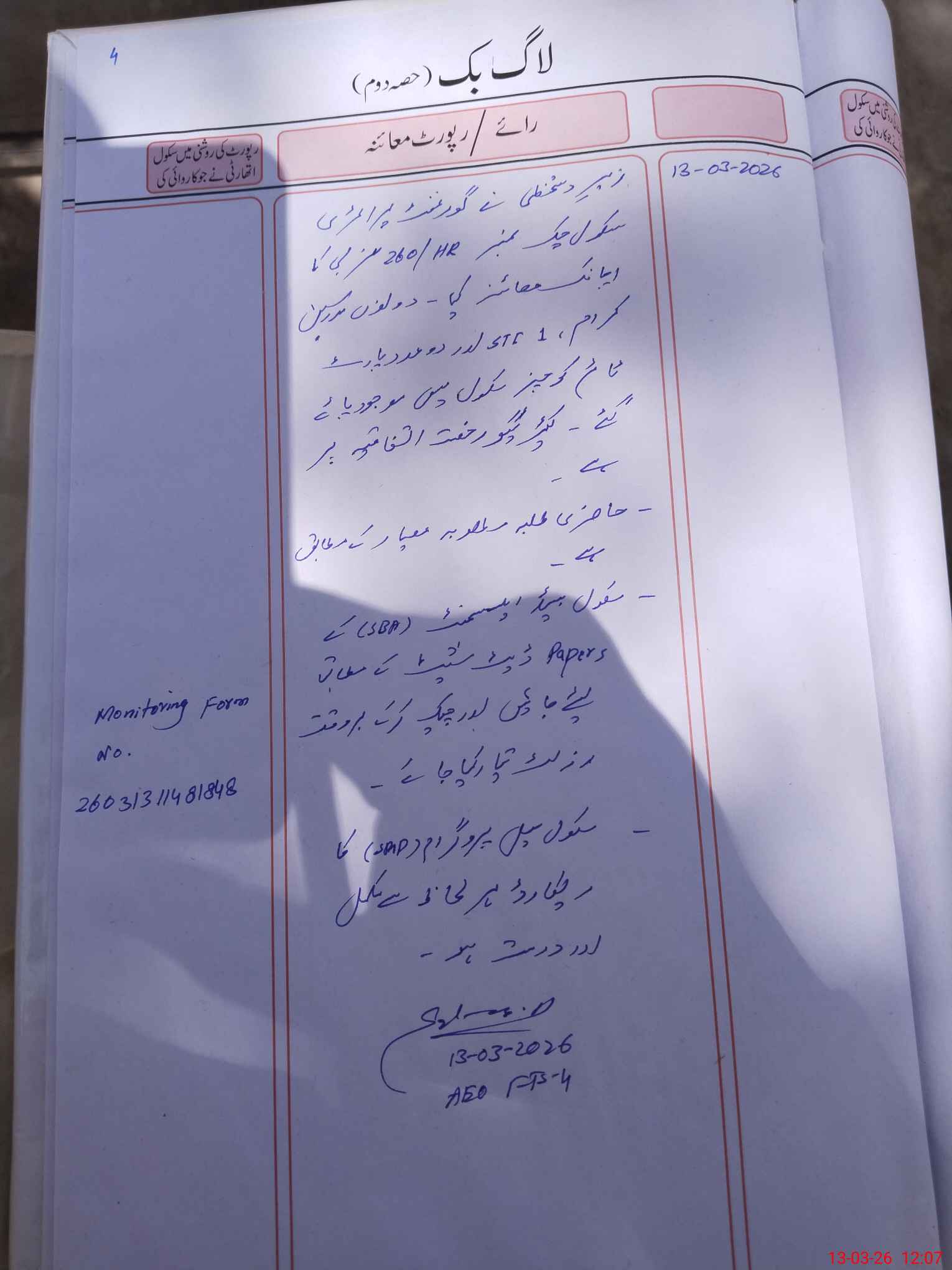 | Monitoring Date: 13-03-2026 | Start Time: 13-03-2026 11:40 AM | End Time: 13-03-2026 12:10 PM | Name of MEA: Mu**** Sa**** | |