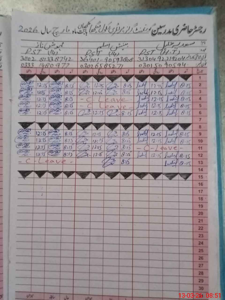 | Name: Sa**** Kh**** Designation: (School Headmaster's/Headmistress's) PST Phone/Cell Number: 03**** |