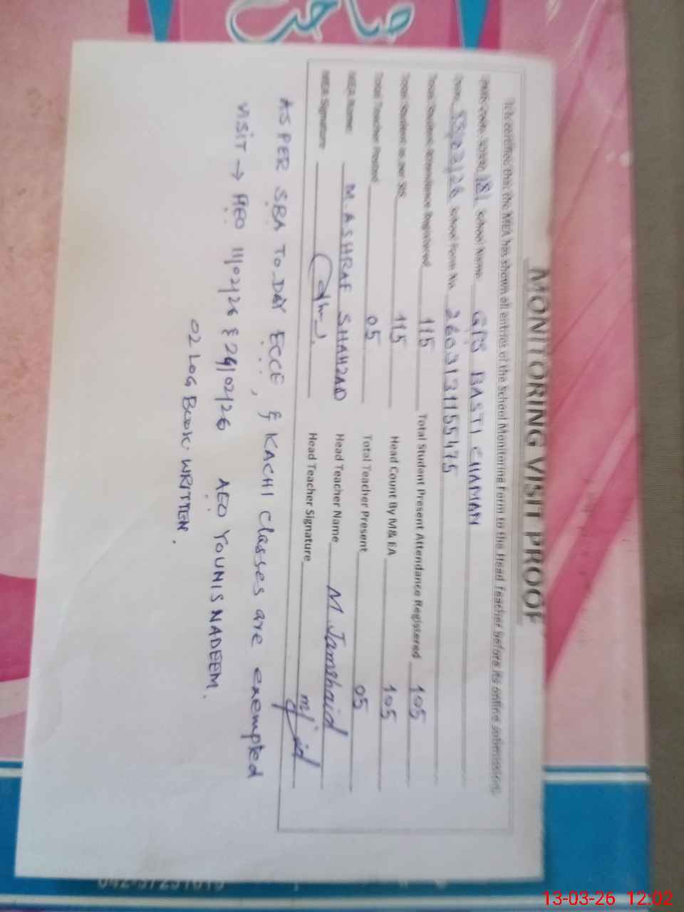 | EMIS Code: 32330181 | Name of School: GPS BASTI CHAMMAN | |||