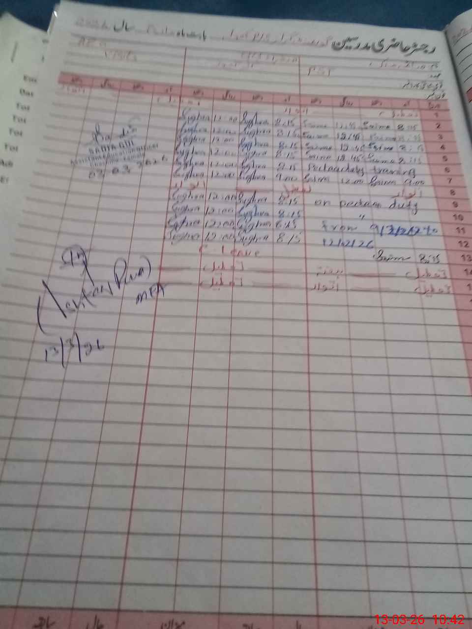 | CNIC | Full Name | Designation | R/C | Absence During Last Calender Month |