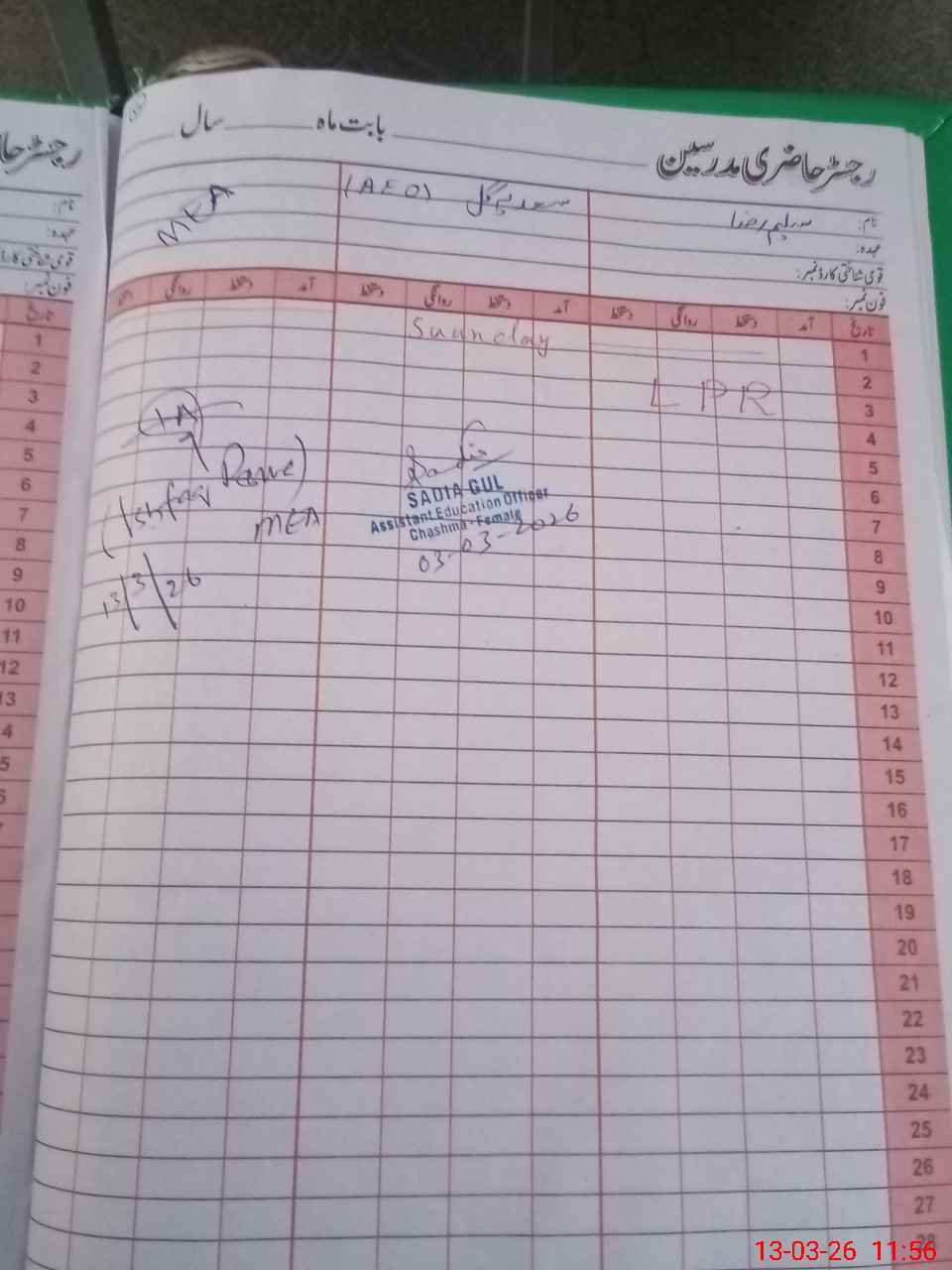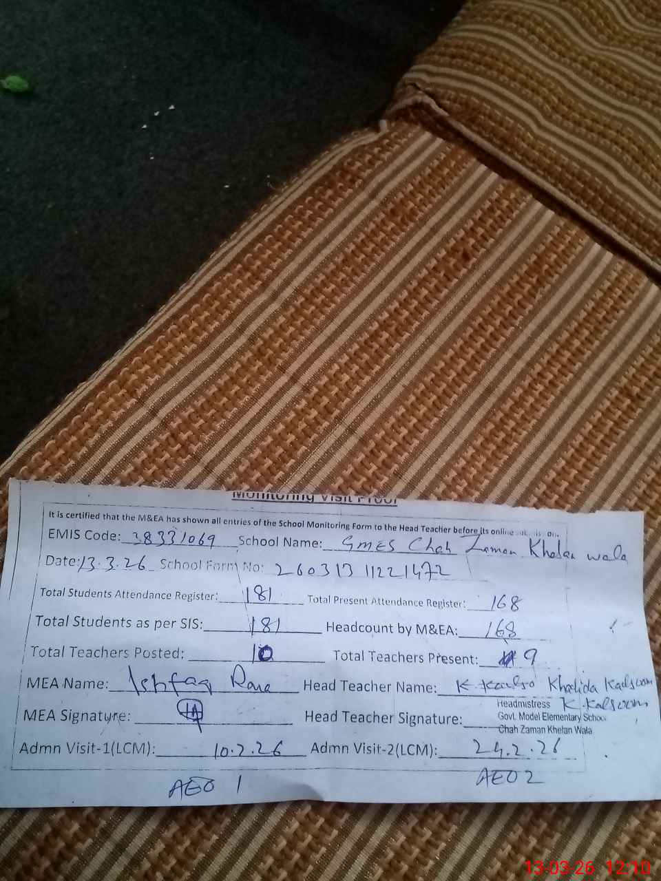 | Attendance Register | Head Teacher | MEA with School | Visit Proof |