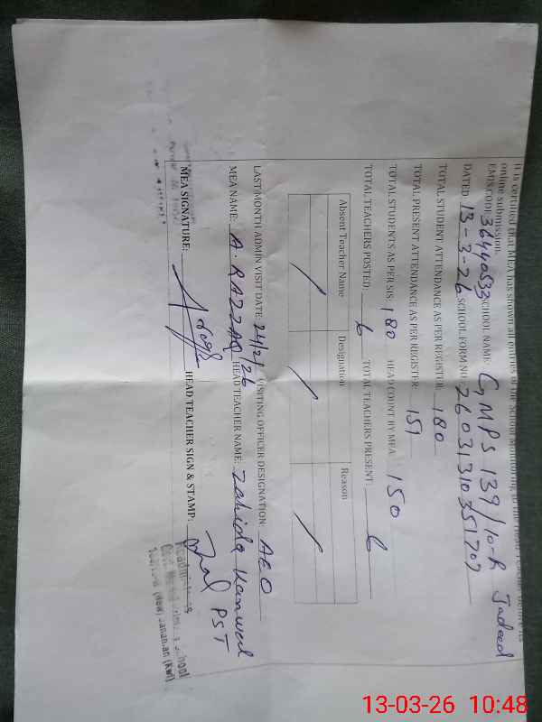 | Attendance Register | Head Teacher | MEA with School | Visit Proof |