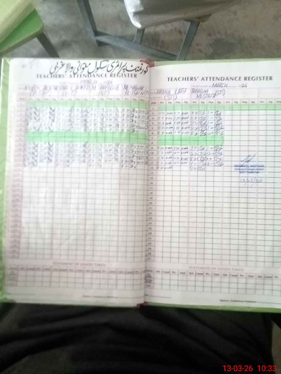 | Name: M.**** Designation: (School Headmaster's/Headmistress's) PST Phone/Cell Number: 03**** |
