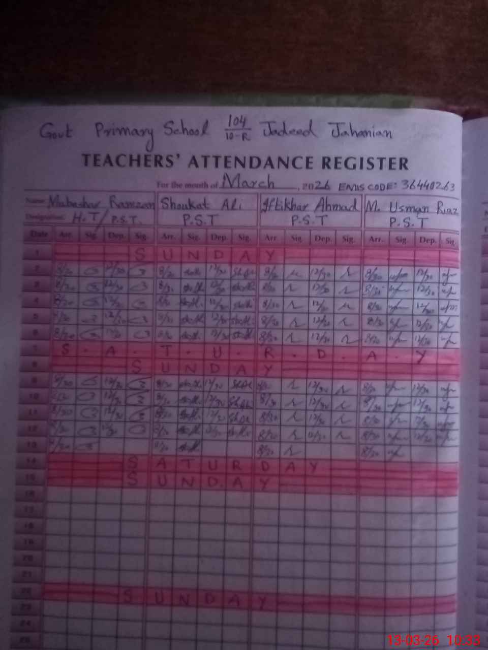 | Name: MU**** RA**** Designation: (School Headmaster's/Headmistress's) PST Phone/Cell Number: 03**** |