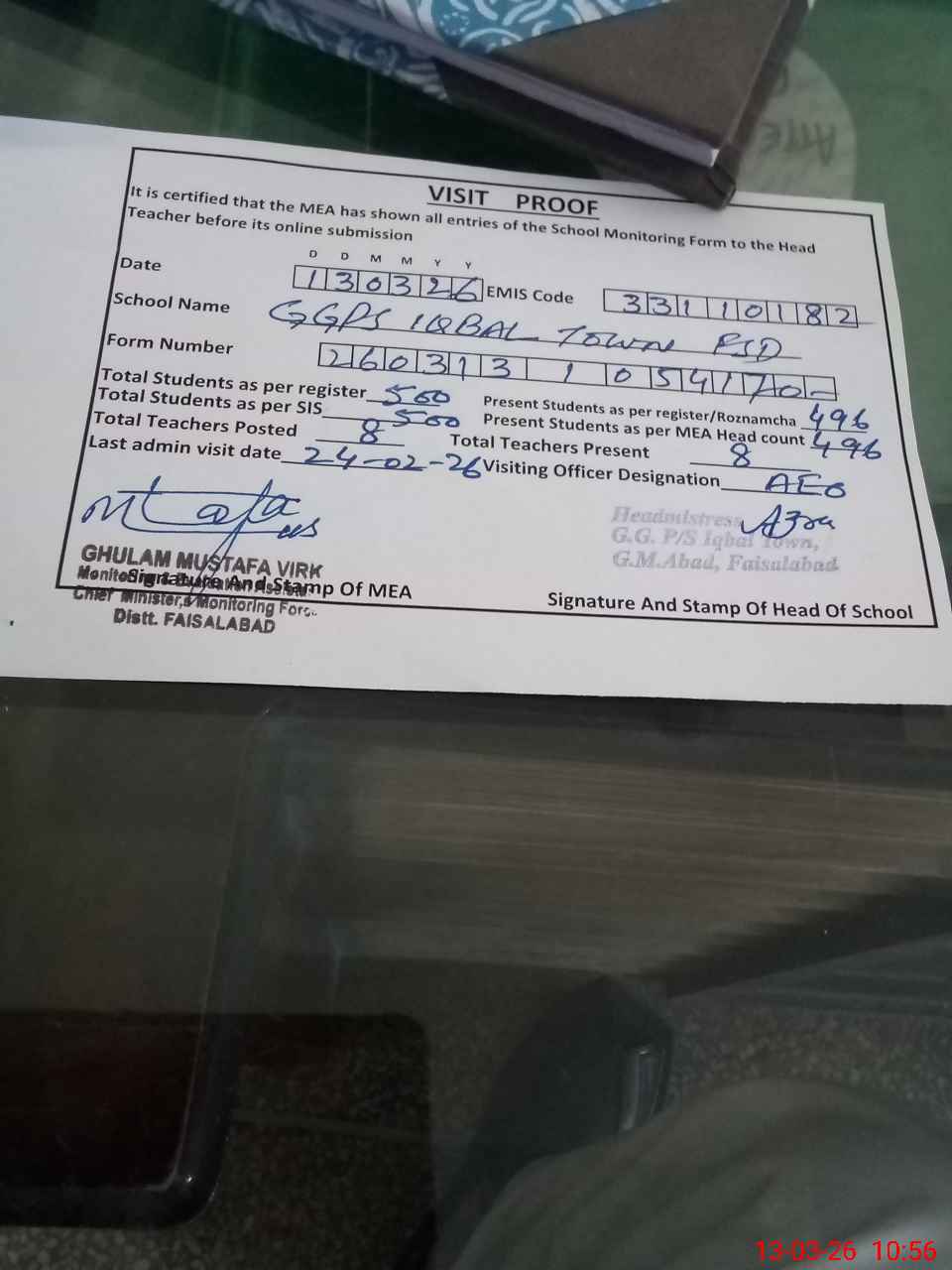 | EMIS Code: 33110182 | Name of School: GGPS IQBAL TOWN FSD | |||