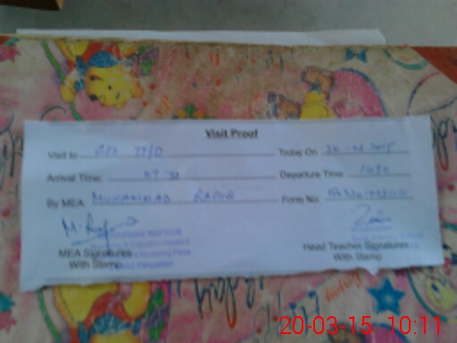 | Attendance Register | Head Teacher | MEA with School | Visit Proof |