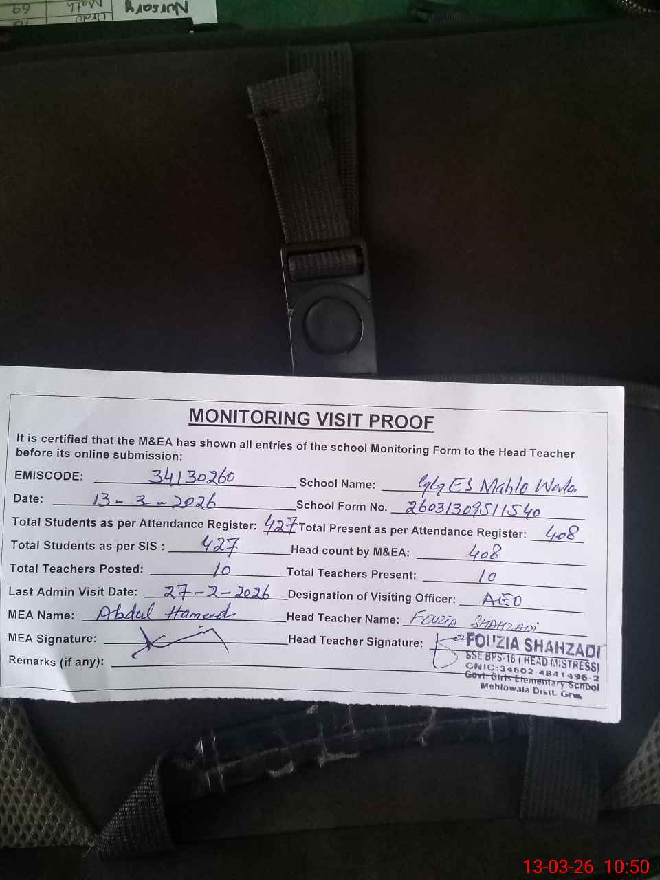| EMIS Code: 34130260 | Name of School: GGES MAHLO WALA | |||