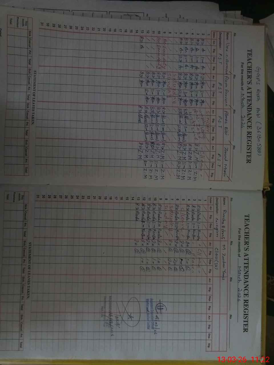 | CNIC | Full Name | Designation | R/C | Absence During Last Calender Month |