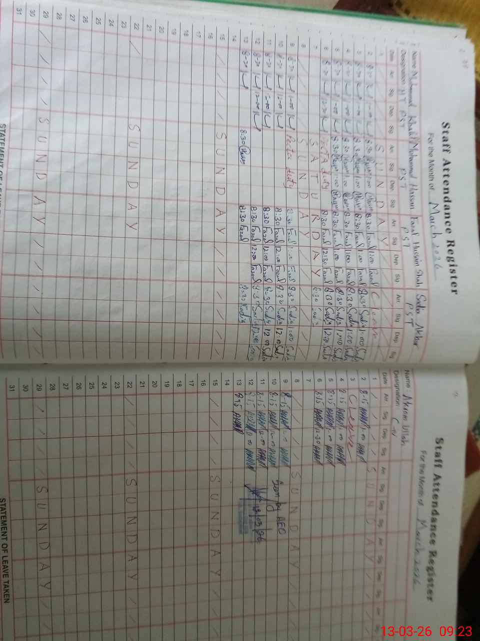 | Name: M.**** Designation: (School Headmaster's/Headmistress's) PST Phone/Cell Number: 03**** |