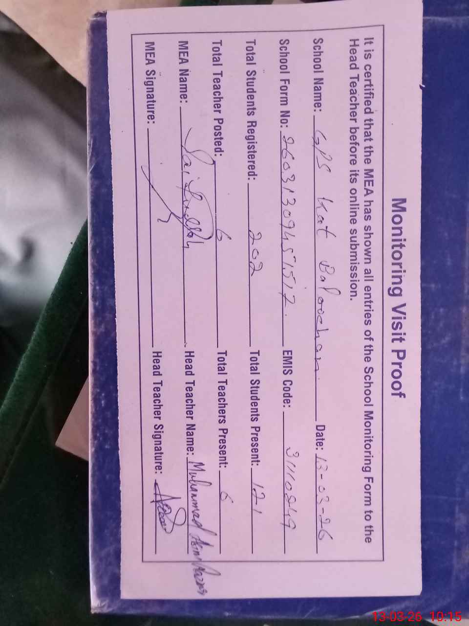 | EMIS Code: 31110249 | Name of School: GPS KAT BALOOCHAN | |||
