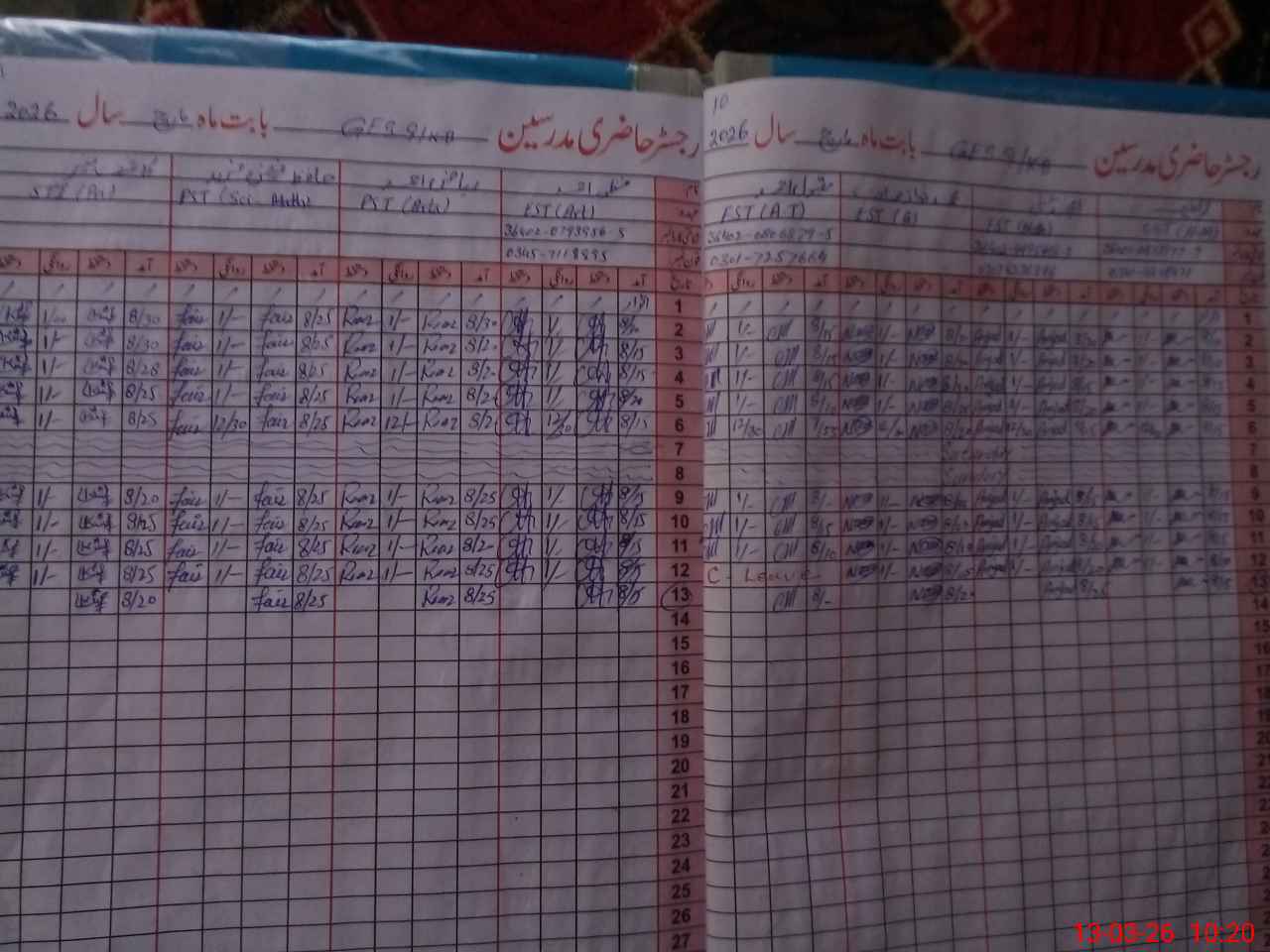 | Name: MU**** LA**** Designation: (School Headmaster's/Headmistress's) S.S.T.(GENERAL) Phone/Cell Number: 03**** |