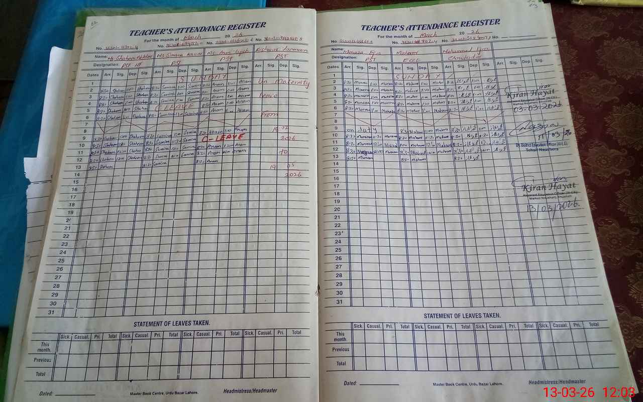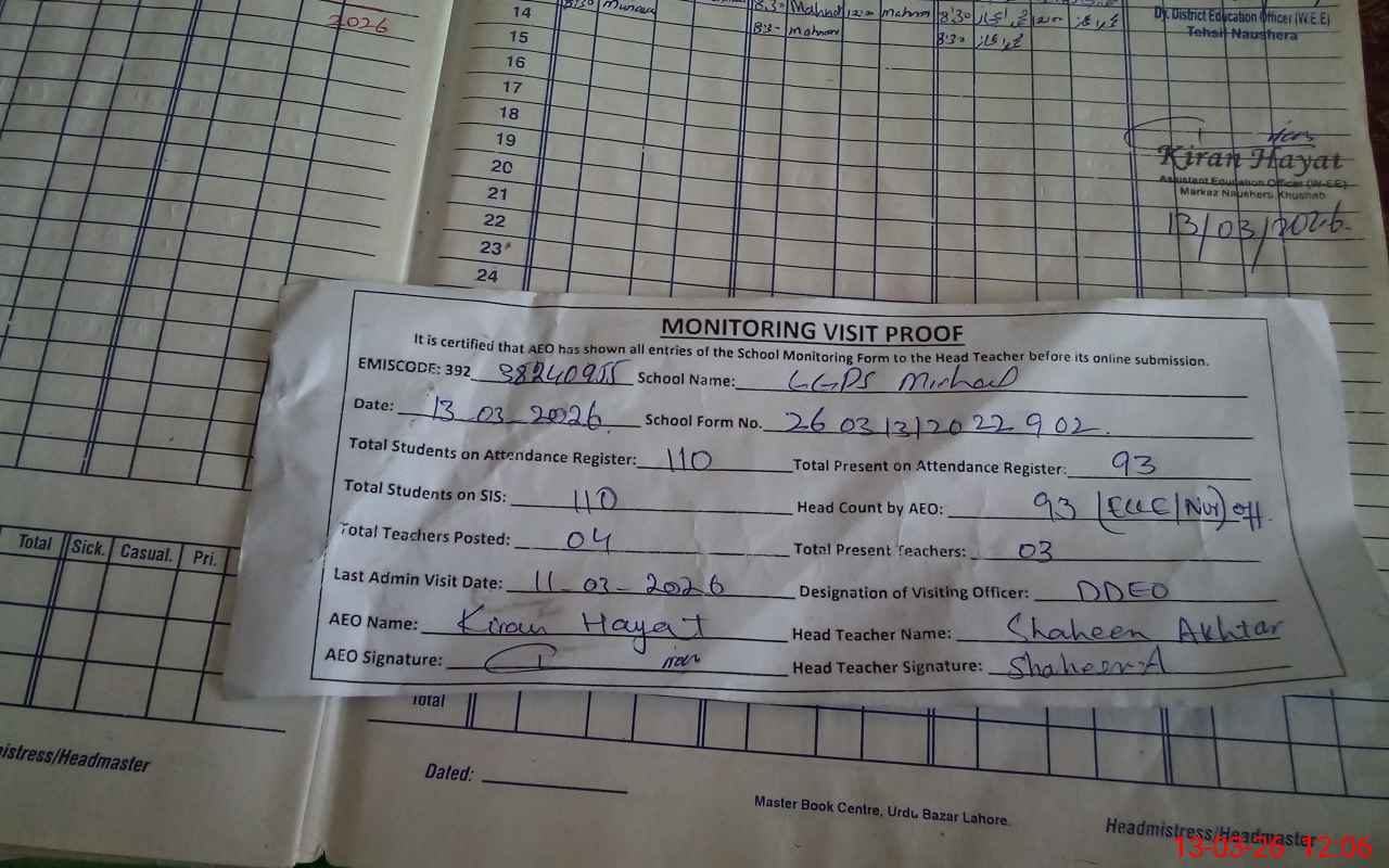 | Attendance Register | Head Teacher | MEA with School | Visit Proof |